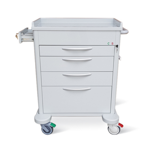 4 paracolpi angolari in PVC antistriscio. 4 ruote termoformate piroettanti in gomma piena,