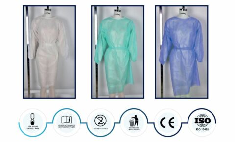 Camice monouso non sterile, idrorepellente, ultraleggero, ipoallergenico, bassa elettrostaticità resistenza alla penetrazione acqua salina e alcol, elastici ai polsi e laccetti garantiscono la migliore vestibilità. …
